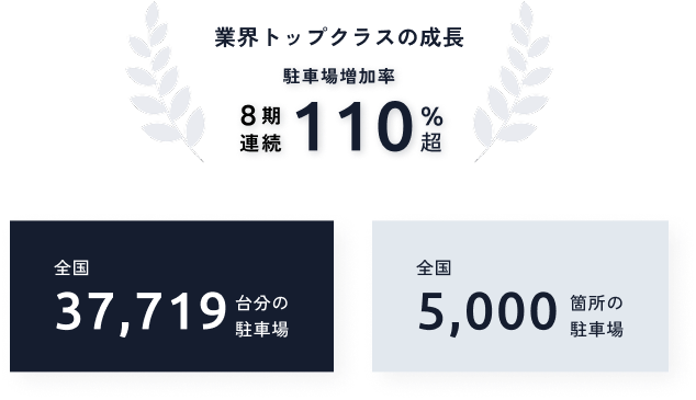 その背景には、駐車場用地獲得・企画開発・運営能力を活かした営業力が元となっており、駐車場設計・施工から保守・運用まで自社で一貫した運営管理体制が、オーナー様・オーナー企業様に支持されています。