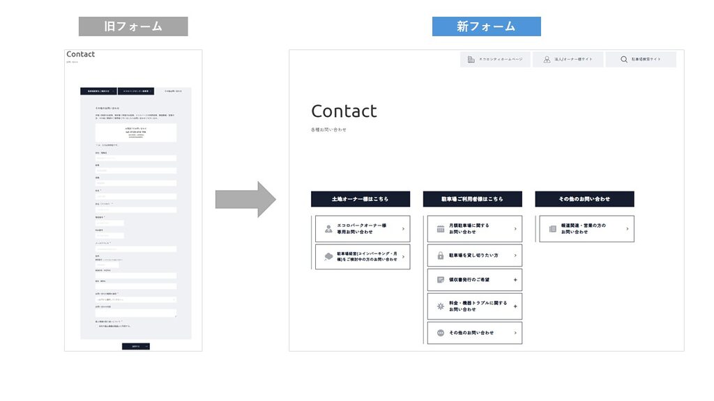 エコロシティ株式会社は、コーポレートサイト、サービスサイト、駐車場検索サイトにおいて、お問い合わせフォームを全面リニューアルいたしました。今回の改修は、ご利用者様の利便性向上を目的とし、問い合わせ先の選択をより分かりやすくし、スムーズな操作を可能にすることを目指しております。